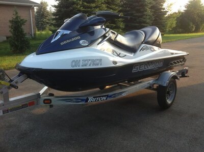 1 OWNER SEADOO, SUPER CLEAN AND SUPER FAST~SUPERCHARGED! ON A BRAND NEW TRITON ALL ALUMINUM TRAILER WITH 50 KMS ON IT, COVER AND SAFEY EQUIPMENT, COME AND SEE THIS SKI AND YOU WILL BUY IT! ONLY 47 HOURS MATURE DRIVEN WI...